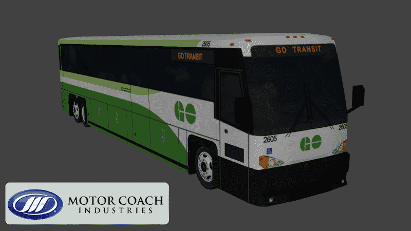 The MCI D4500 is a Diesel Highway Coach operated by Metrolinx for GO Transit. This bus is quite common in Toronto and the GTA. It commutes great distances between major transit hubs. This bus is generally equipped with bicycle racks to carry two bikes, however we felt it looked better without them in-game.