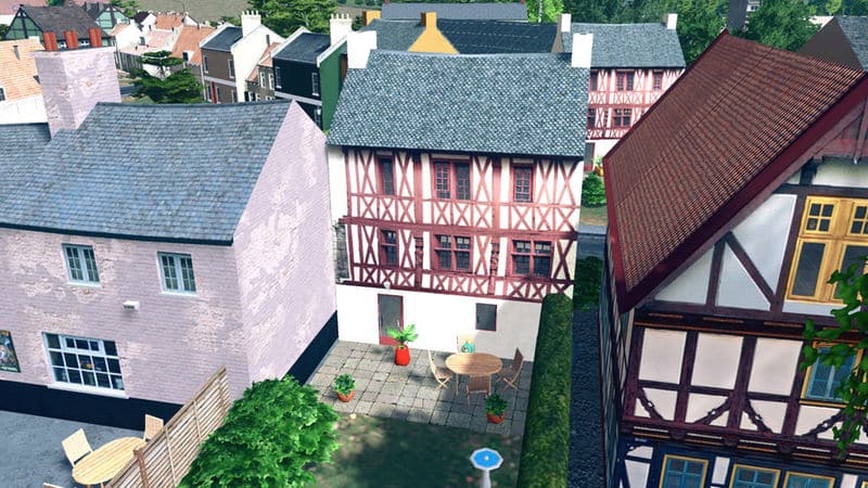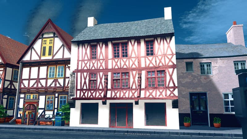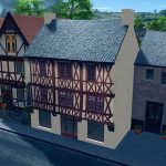 A medieval half-timbered wall to wall town house.