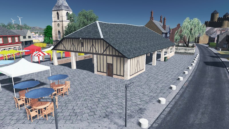 This picturesque half-timbered medieval market hall provides a convenient place for your cims to do the groceries and gives character to town and village centres. It is inspired by old market halls that were… uh… halls in which the market took place, but also other important events of the town’s life.