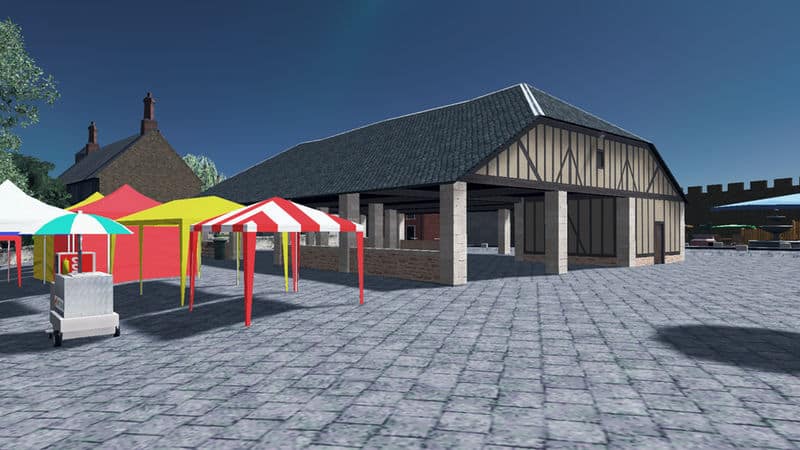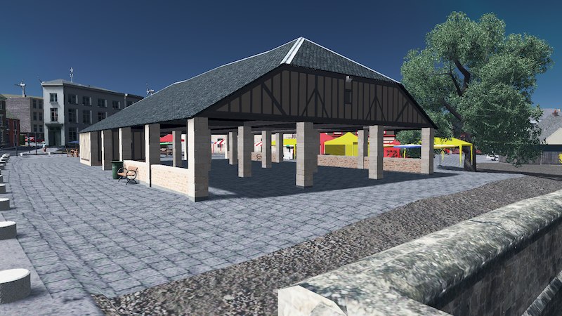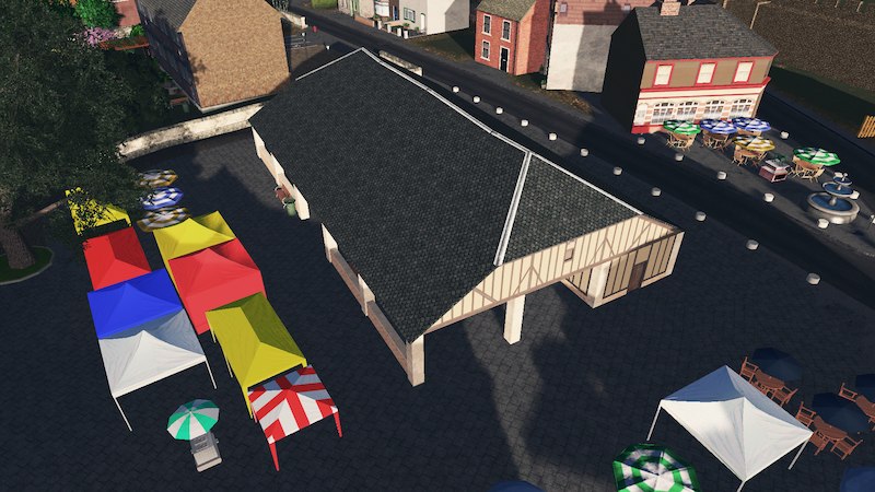 This picturesque half-timbered medieval market hall provides a convenient place for your cims to do the groceries and gives character to town and village centres. It is inspired by old market halls that were… uh… halls in which the market took place, but also other important events of the town’s life.