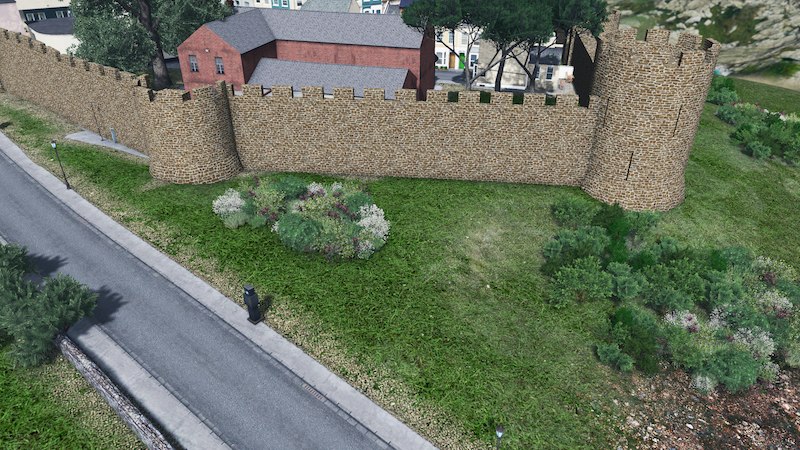 - Walls and gates are statless and terrain-conforming. Towers increase land value because of tourism.