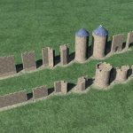 The Modular Medieval Wall is a set of ramparts, towers and gates inspired by medieval Anglo-Norman and French military architecture. Divided into short (6m) and tall (12m) variants.