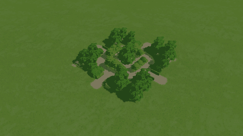 This 8×8 park is perfect for relaxing in a city. It´s perfect to place in between two roads or even surrounded by four roads.