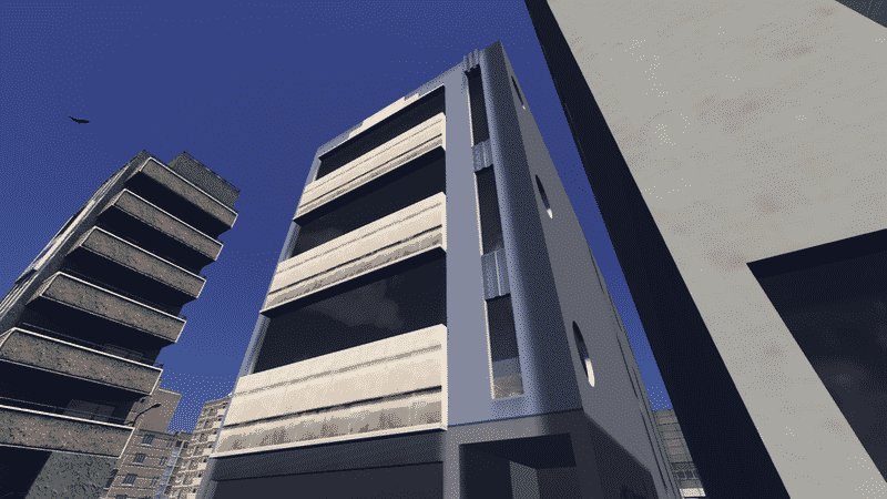Based on Drayton House in Lt Bourke St, Melbourne, Australia, a 1938 Moderne concrete office building designed by RM & MH King for Charles Walter Donne, stationer and printmaker.
