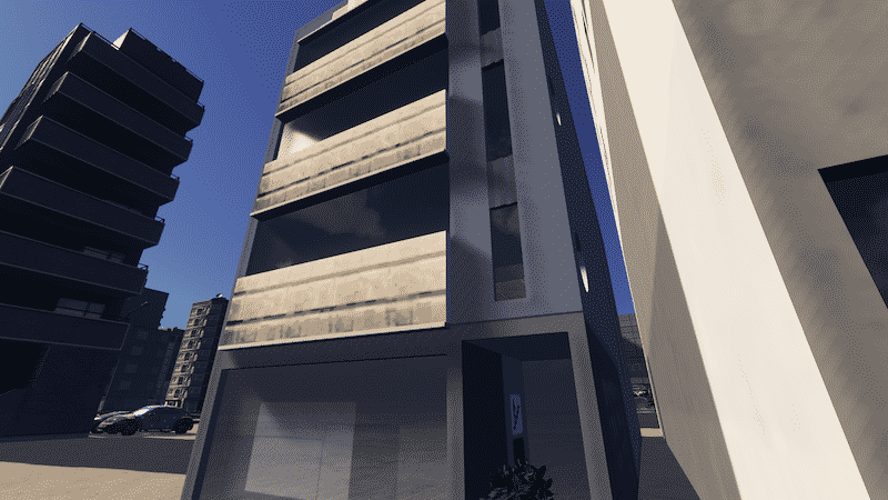 Based on Drayton House in Lt Bourke St, Melbourne, Australia, a 1938 Moderne concrete office building designed by RM & MH King for Charles Walter Donne, stationer and printmaker.