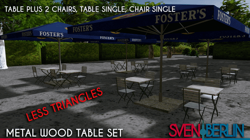 I reduced the tris count from 1492 to 796 for the table set ( 1 table, 2 chairs )