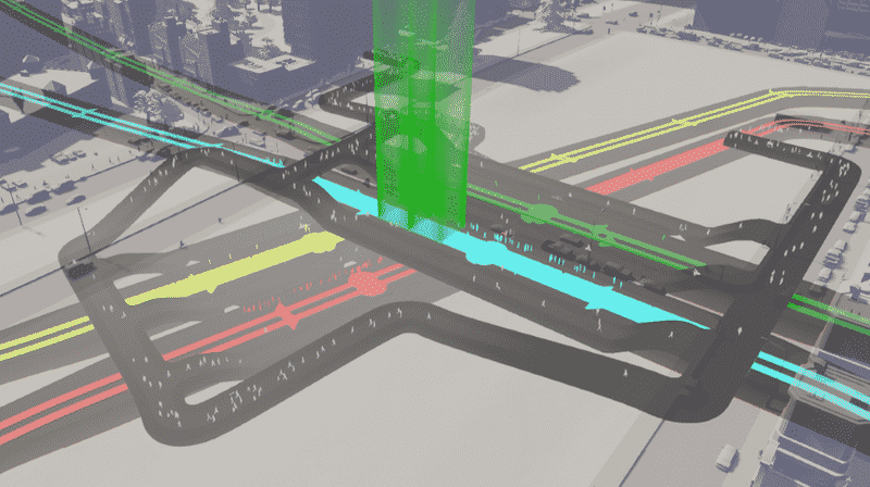 - create metro hubs using several stations at different depths and angles, connected with ped tunnels. Minimum recommended step between 2 stations is 12 m. See background images, with 2 stations hub: upper station (144m length, -15 m depth, 0 degrees), lower station (144 m length, -27m depth, 285 degrees)
