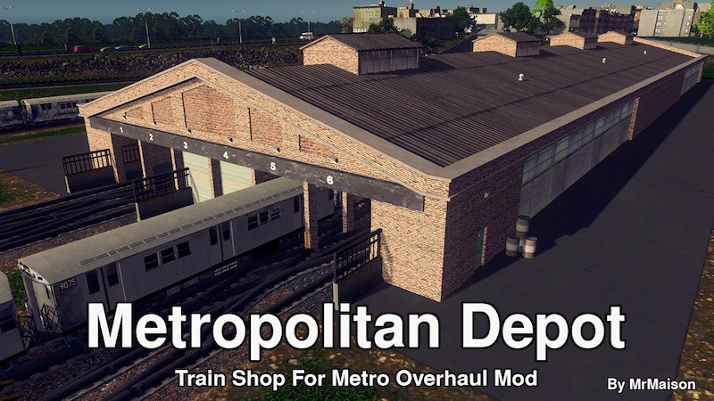 Introducing the Metropolitan Depot! It’s a depot/shop giving your new metro trains a home as they now can see the light of day with the new Metro Overhaul Mod. This is a great centerpiece for a metro/subway train yard.