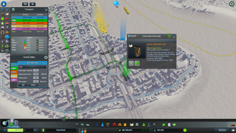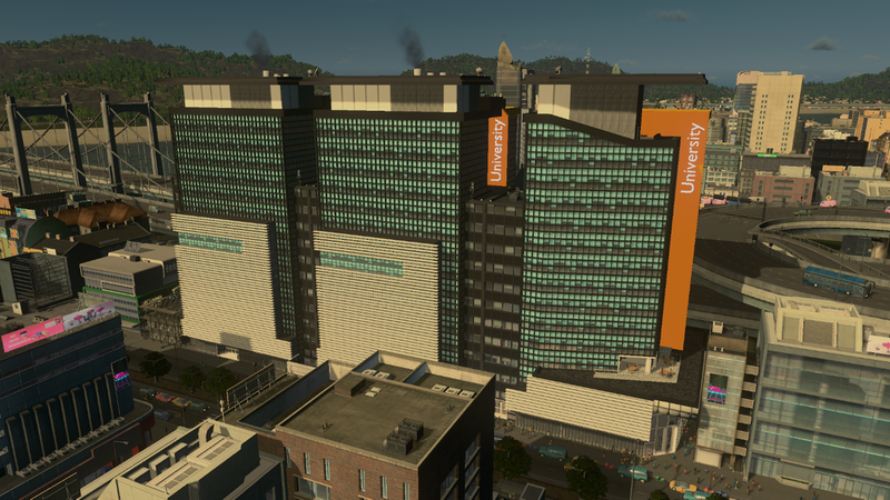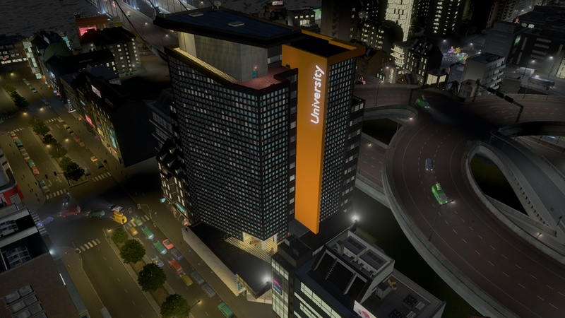 It has two built-in metro lines (much like the real thing). It has a large radius to meet all your metropolitan needs, and a slightly higher-than-vanilla education value, as this is one of the largest Universities in Canada and one of the most renown. You can change the color of the orange banner thanks to the mapping provided.