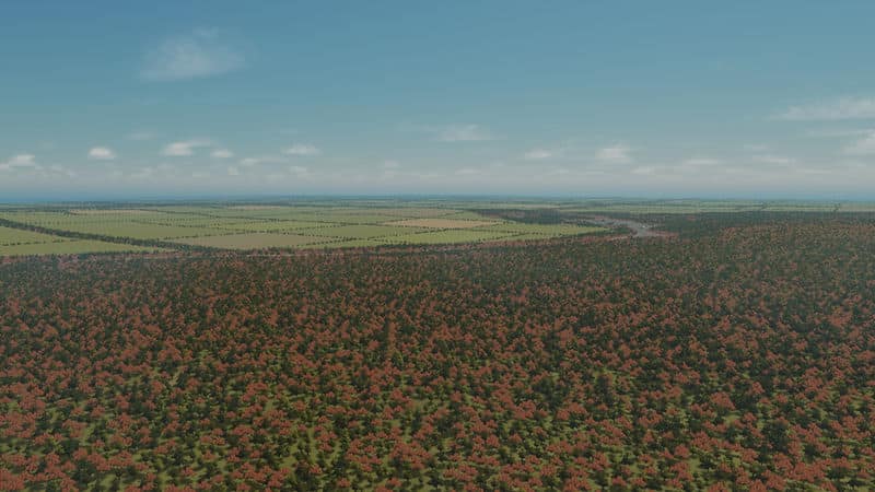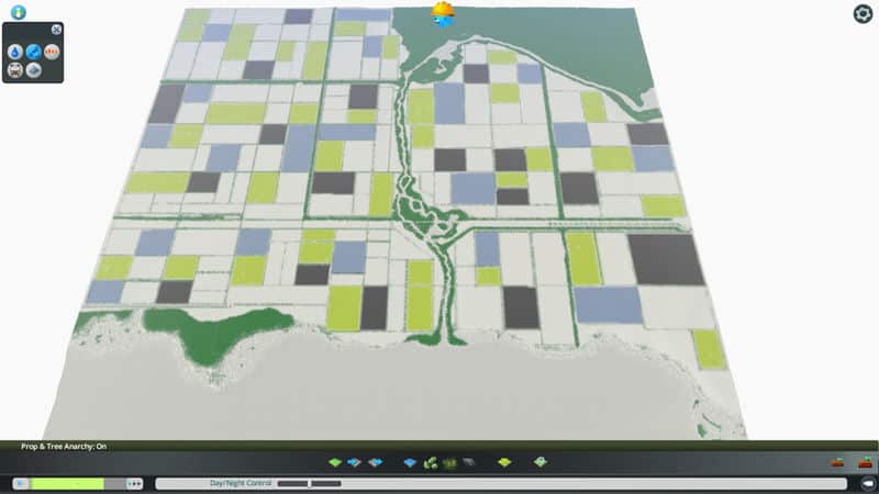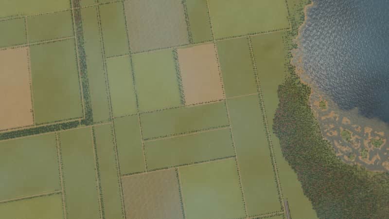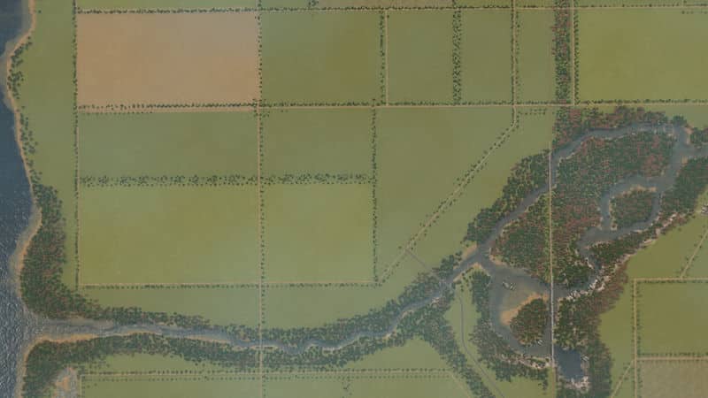 Midwest America is a map inspired by the landscapes of the ‘Midwest’ – a region of the United States of America. The map attempts to replicate the endless gridlike agricultural divisions found in US states like Nebraska, Iowa, and Illinois. Coastline covers a small fraction of the tiles on one side of the map, allowing players to construct a Chicago, IL inspired city in they desire.