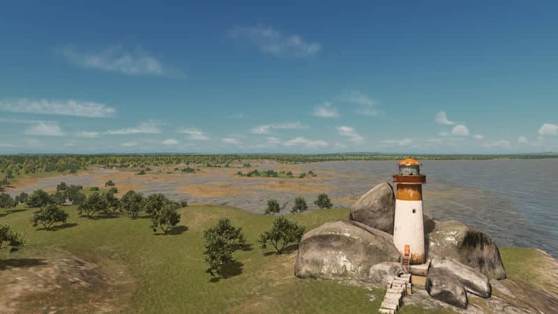 The development sits on the side of Lake Mascouten, a landlocked freshwater lake. Much of the coastline is marshland or swamp and will need terraforming to be modernised.