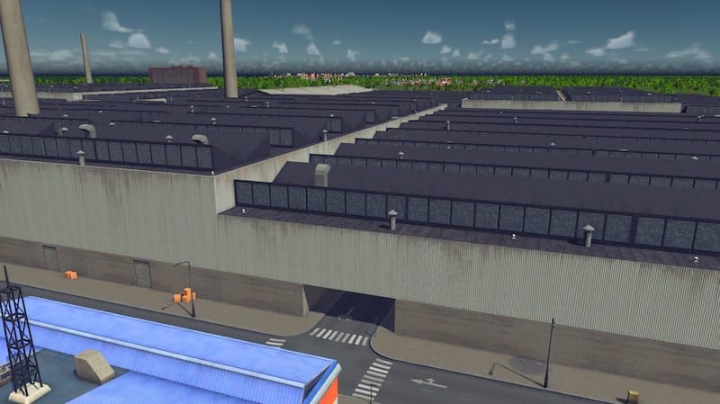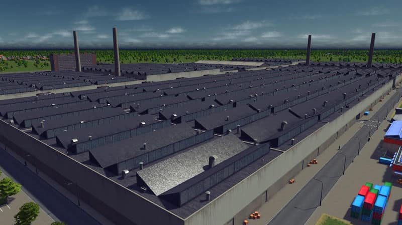 Factory floor – this version has a road leading through the building. Works both on it’s own or together with the rest of the complex. Without the RICO mod this is just a park that doesn’t do anything. Atm it wants ALOT of highly educated workers – I will tweek this when possible through the RICO mod.