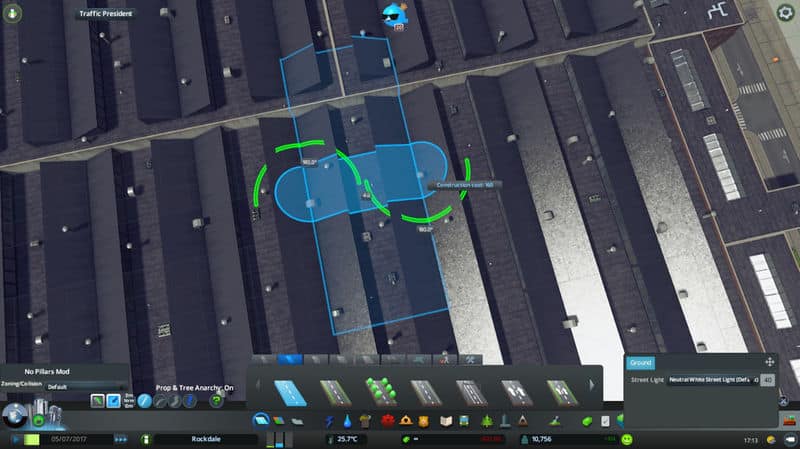 The road stops a little bit before the end of the building – this is to ensure you don’t need any mods to connect it to the front building. When the two are placed back to back all you need to do is find the snap points and drag a road between the two (see last picture above). Cims will then happily drive through. Bus stops can also be placed on the road inside the building if you’d want that.