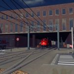 • Outgoing trains always spawn on the right, incoming arrive at the left (for right hand drive), causing them to cross if they leave out the gront of the building.