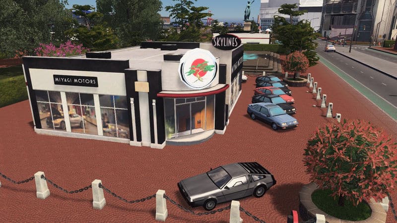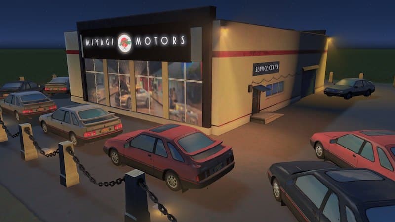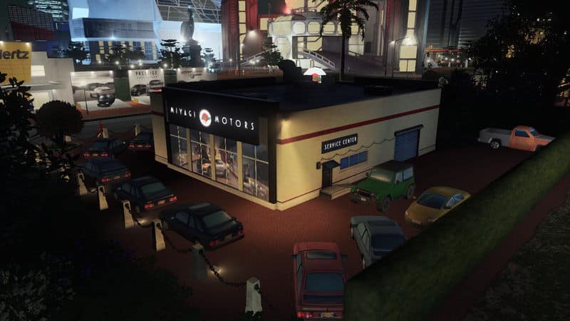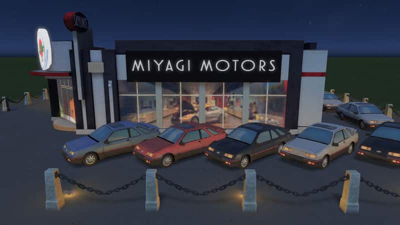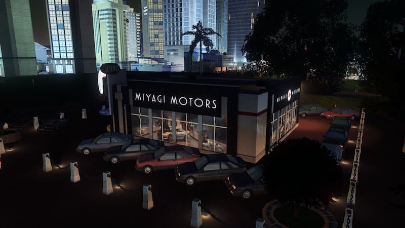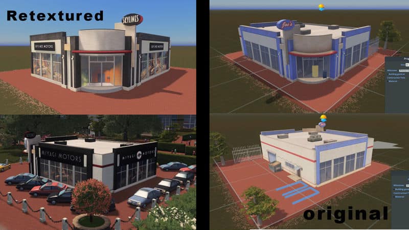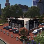 Completely retextured CS building with its own props and logos. Made to look like a higher-end dealership with dark grey and red accents and a high end dealership interior visible day and night.