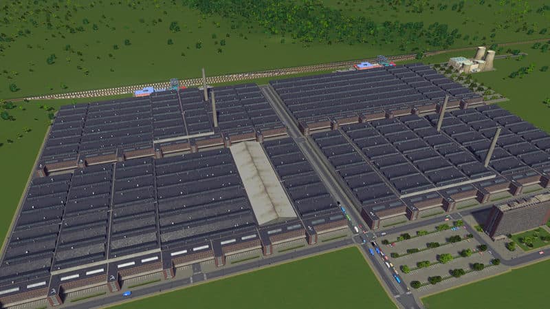 Factory floor with offices in front – this version has an extra high roof. Works both on it’s own or together with the rest of the complex. Without the RICO mod this is just a park that doesn’t do anything. Atm it wants ALOT of highly educated workers – I will tweek this when possible through the RICO mod.