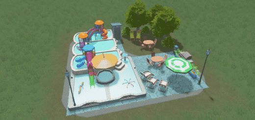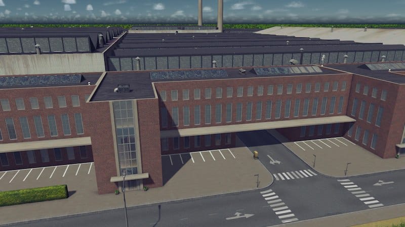 Factory floor with offices in front – this version has a road leading through the building. Works both on it’s own or together with the rest of the complex. Without the RICO mod this is just a park that doesn’t do anything. Atm it wants ALOT of highly educated workers – I will tweek this when possible through the RICO mod.