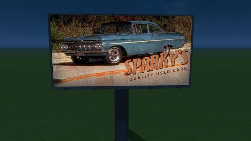 This beautiful billboard trio was made by TrytanX, an advertising professional! Along with a cool retro car ad for Sparky66 and his extensive cool car creations, we have Svenpotsdam, who produced model of nearly every airline imaginable for us, and Shroomblaze, creator of countless beautiful assets and an artist in real life! TrytanX did an awesome job, so give him a shoutout here, thanks to GCVos for the customizable billboards, and of course to Shroomblaze and Svenpotsdam for all their hard work over the past year.