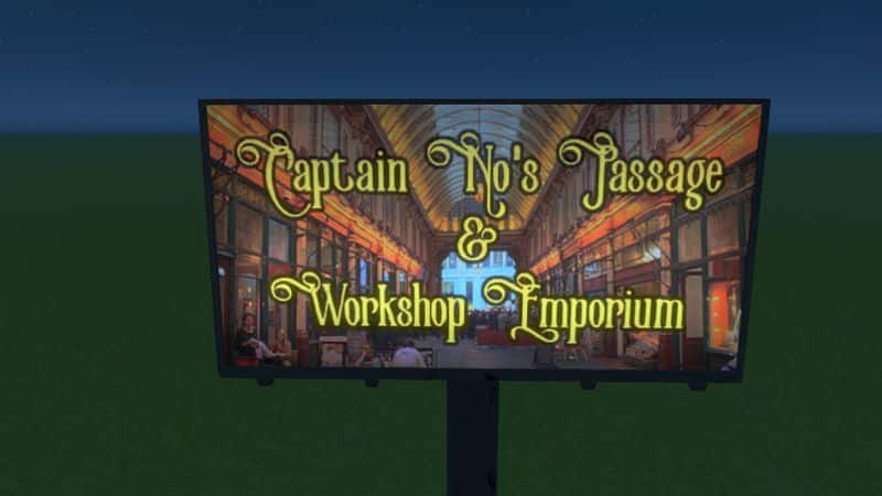 When I made a panel of my first 3 sided, illuminated billboard a panel for Kliekie’s houses, it inspired an idea: billboard ads for items our modders make for us! Along with [CTC] Dexter, who makes amazing and extremely popular intersections, this billboard set also tips the hat to other community members who make our game community great: Captain-NO, whose collections are *the* place to go shopping for anything you could possibly want in a category of city theme (“Passage” is the German term for Shopping Arcade), and Pete McTavish, whose live streams have been a great inspiration to me in how to focus on the details.