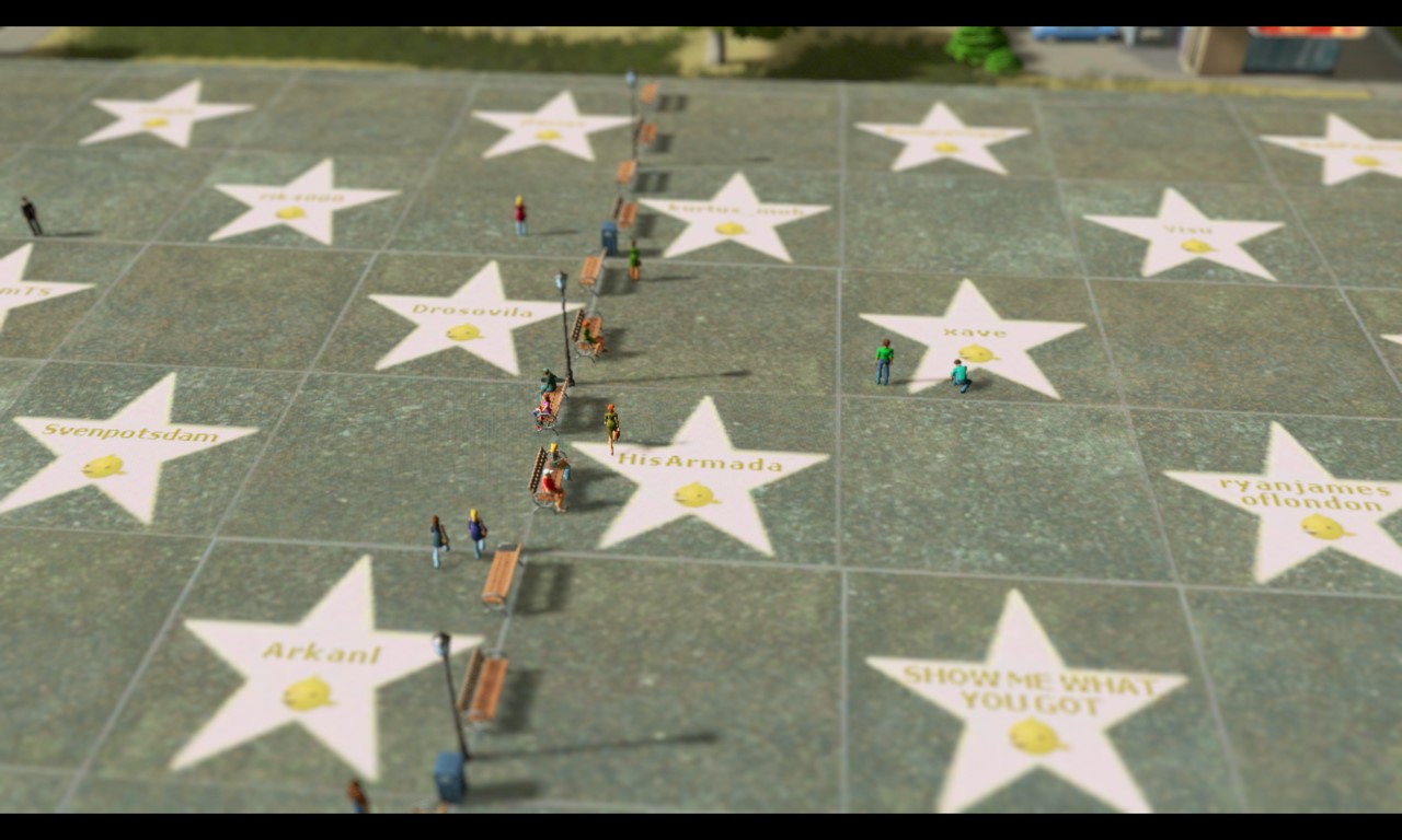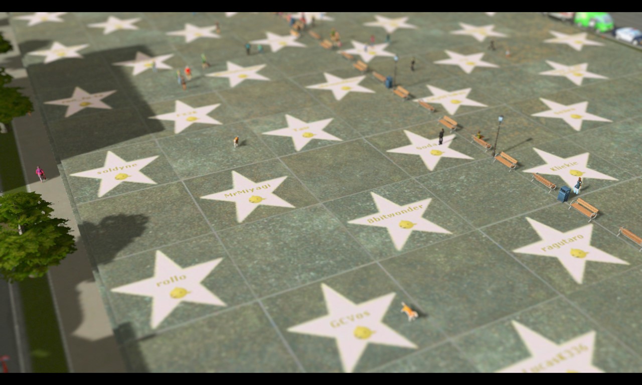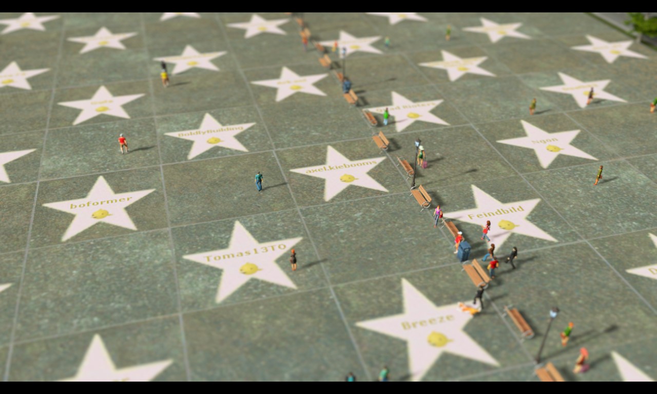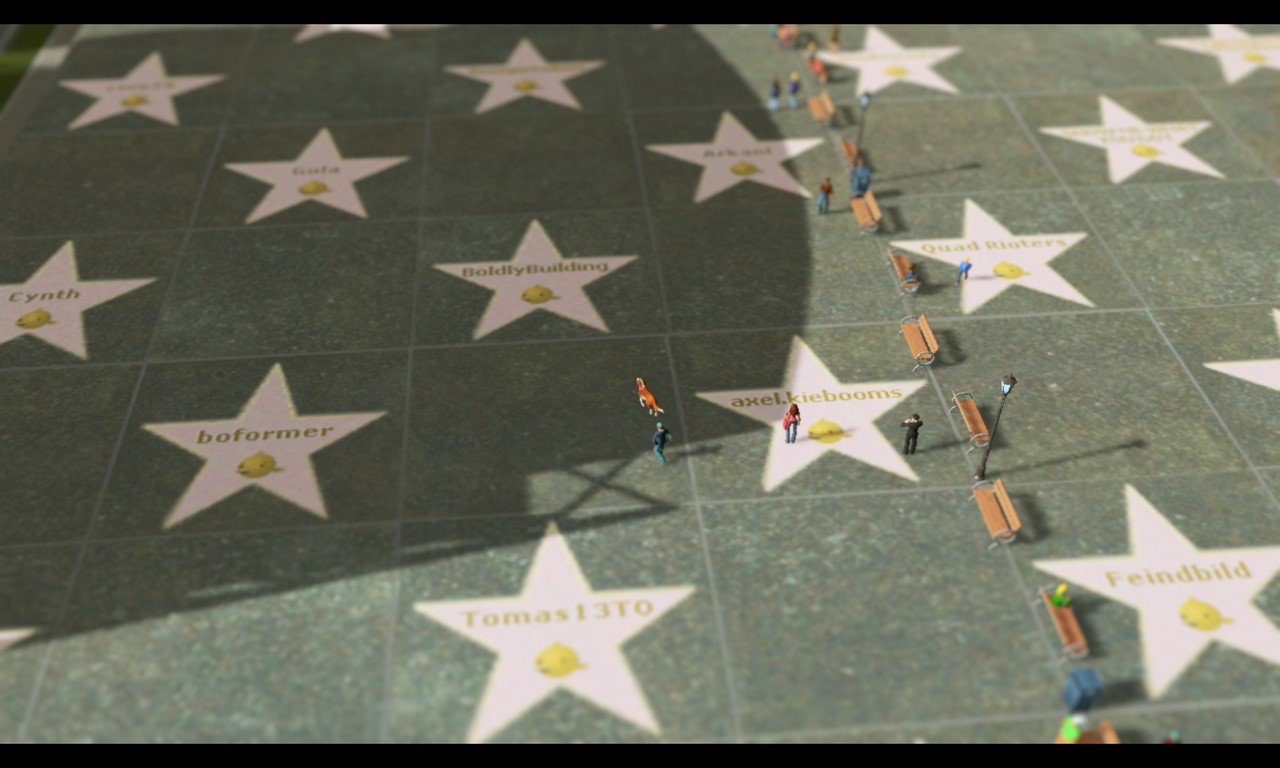 Due to texture space, compatible file size and recognizable modder names and chirpies only 64 modders got a star on this walk of fame. I’ve made a list with over 320 modders and tested a lot, but sadly I wasn’t able to get them all in and shown up in a good decent way. So these 64 modders have to symbolize all other modders,too!