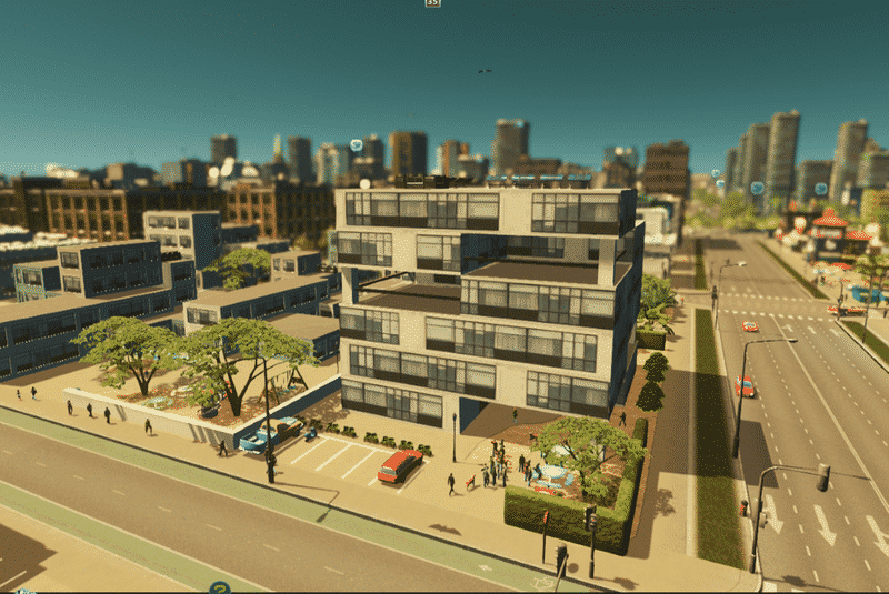 Modern High School is slightly smaller than the vanilla high school. It helps to add variety to your educational buildings, with very simple modern architecture.