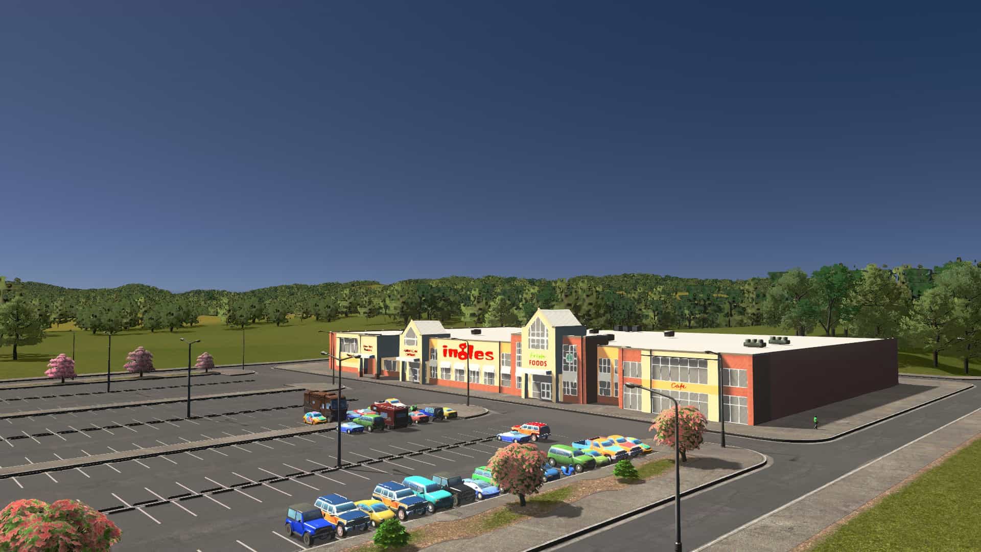 This store is based off of an Ingles store in Marion, NC, a fully equipped 72,000 sq ft store with a Starbucks coffee located inside.