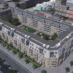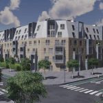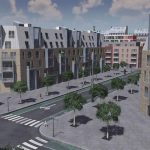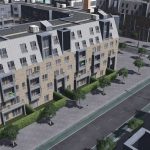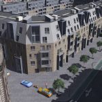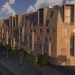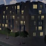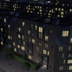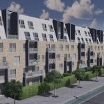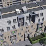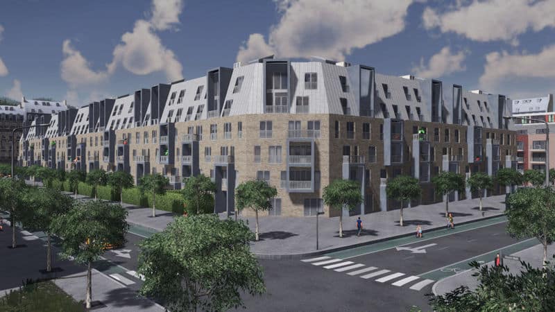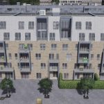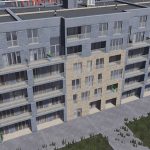 Contemporary brick residential midrise building inspired by a regeneration project in London, United Kingdom. Level 4 high-density residential growables. Footprint: 3×2 and 3×3.