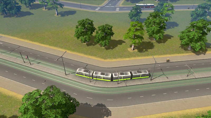 A modern low-floor 4-cart tram. It is recolorable and has slightly better stats than the vanilla tram.