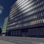 My attempt at a late international style/high modernist/early corporate (insert your own moniker here) office midrise. Very much inspired by the work Pelli and Lumsden did in LA during the second half of the 1960s: Century City Medical Plaza, San Bernadino City Hall – love it!