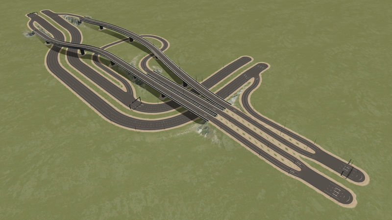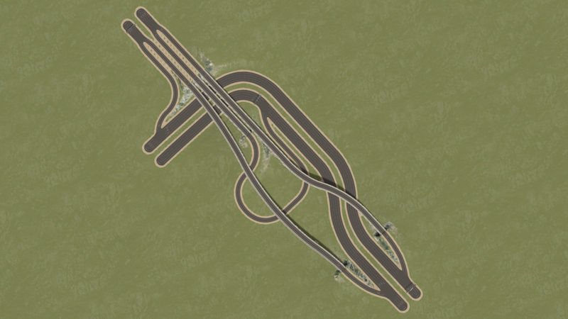 Inspired by Bosiljevo II Interchange in Croatia, this interchange has a rectangular shape, with size 87×30 (a big difference between length and width). Useful in a land where placing a ‘square’ shaped interchange is not possible