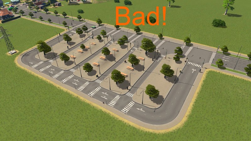* Besides the tiny connections you need to make the one-way roads, you’re pretty free to do as you like, outside the bus stop parks.