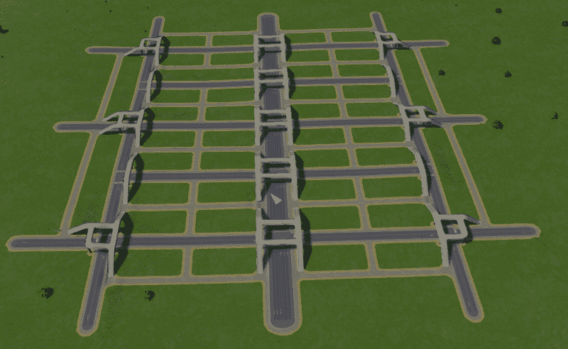 This grid can be expanded to include another 8 blocks on the sides and the initial paths are already provided. Check out some of my Free Flow Roundabouts that you can use to create Avenue corridors surrounding and linked into the grid! This one is designed just for this grid!