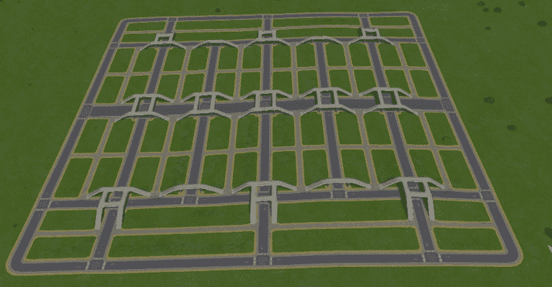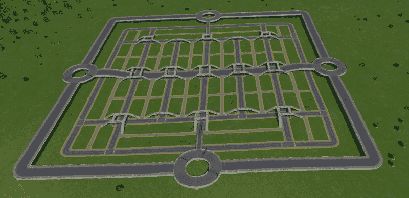 This grid can be expanded to include another 8 blocks on the sides and the initial paths are already provided. Check out some of my Free Flow Roundabouts that you can use to create Avenue corridors surrounding and linked into the grid! This one is designed just for this grid!
