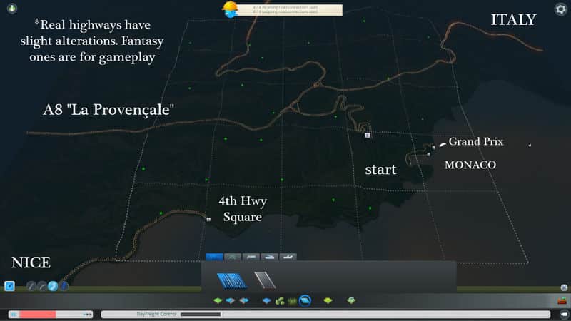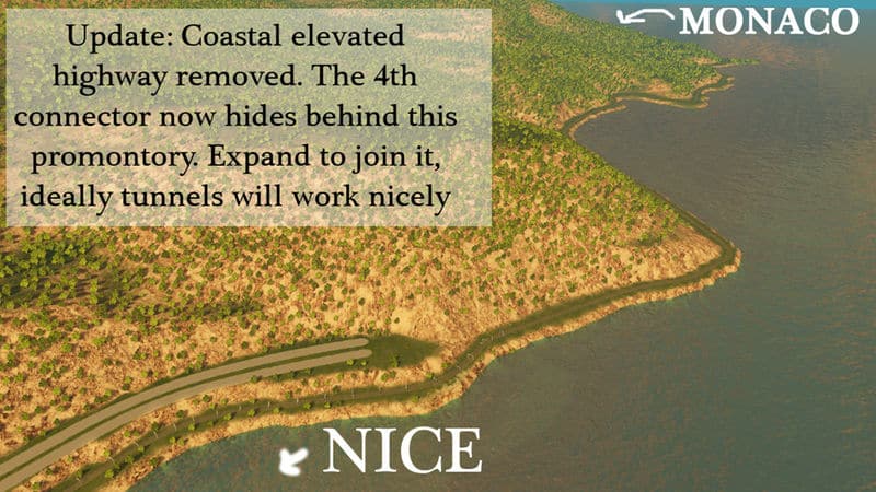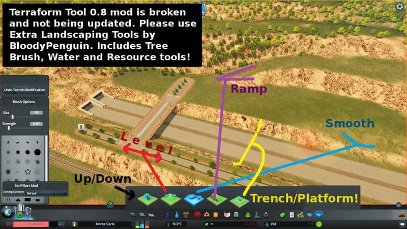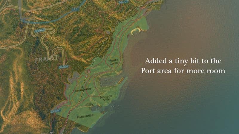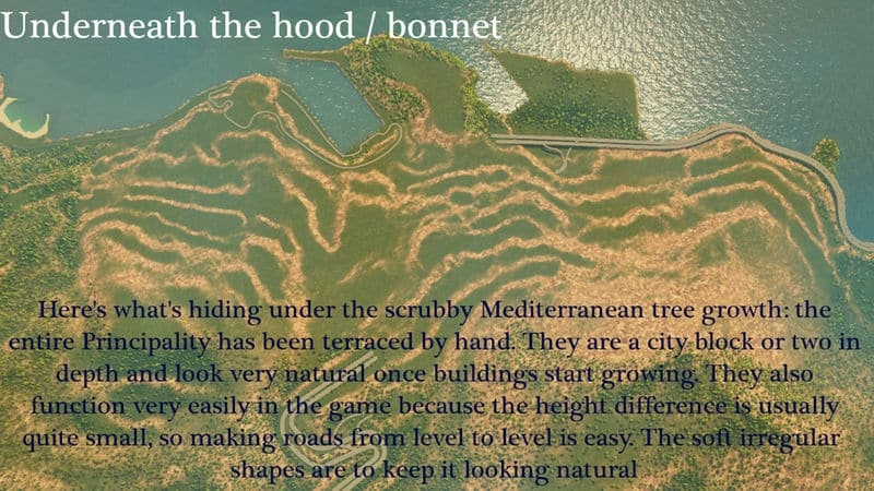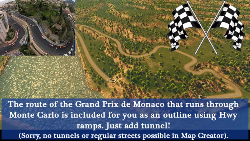 (FYI Terraform Tool 0.8 Mod is dead!) Even though it’s been prepared quite a bit, I really recommend having the Extra Landscaping Tools mod by BloodyPenguin for this map. It allows you to alter terrain and SO much more. Although you can certainly use this map without that mod and even without the map theme, it is a lot of fun sculpting this terrain to match your growng Monaco.. Find the landscaping mod here: