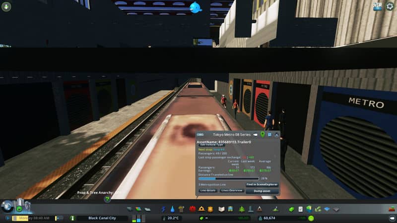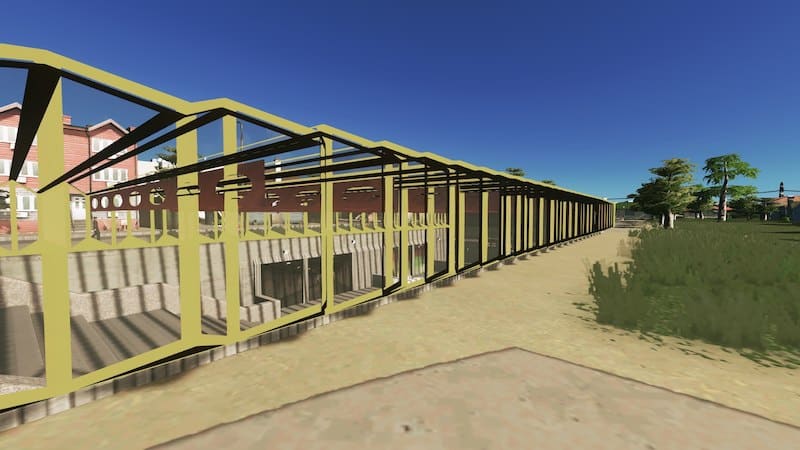 This is my first sunken station and semi-transparent asset so there was a lot of trial and error involved. Be advised that while the asset itself is 15×4 there are tunnel pieces per-existing and extending off the ends of the station so make sure the area you place the station is clear of tunnels and then connect them to your subway network.