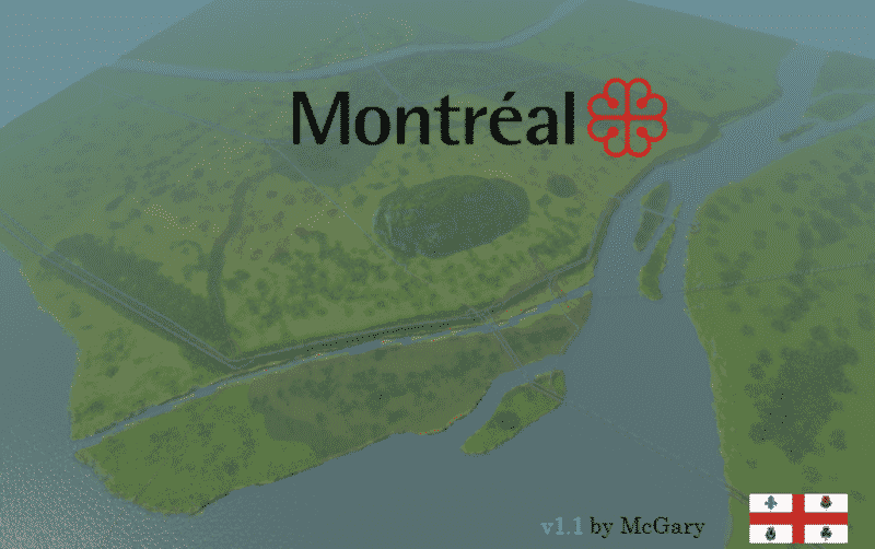 Map of Montreal, generated from real heightmap terrain, with most major highways and railroads added. Plenty of resources and train/ship/plane connections available.