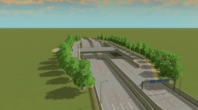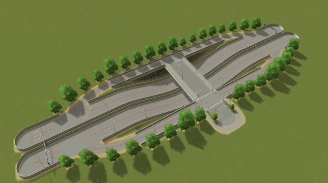 Since I absolutely love to make compact intersections that can be used in the middle of the city and to be effective while doing so. I just decided to make a classic highway underpass that can fit perfectly in the middle of the city. :3
