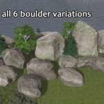 Slightly mossy versions of my boulders. The difference is subtle and you’ll need to zoom in to see it. I sadly couldn’t get it more pronounced without it looking silly and fake.