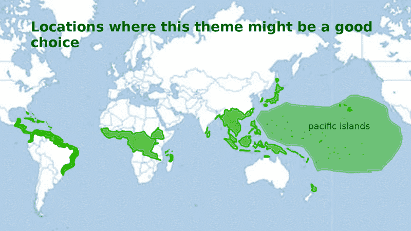 A few clever modders discovered that if you make a tropical looking theme inside the *temperate* biome, you get a much better looking world, with a much less yellow… everything!