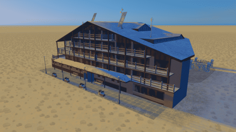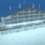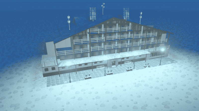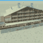 Grande albergo di montagna con area posteriore a parcheggio per i clienti