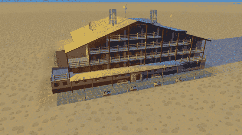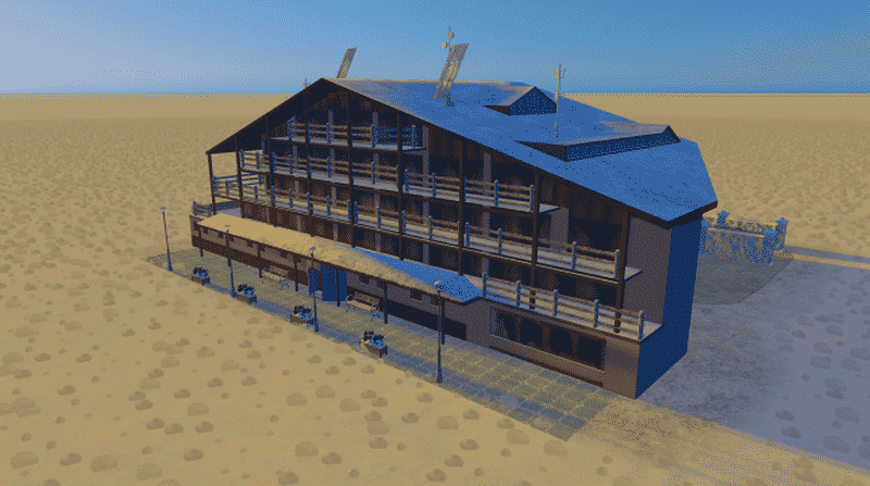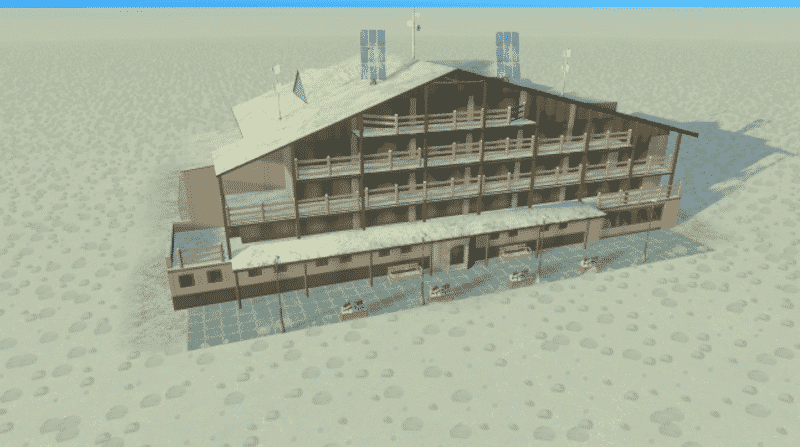 Grande albergo di montagna con area posteriore a parcheggio per i clienti