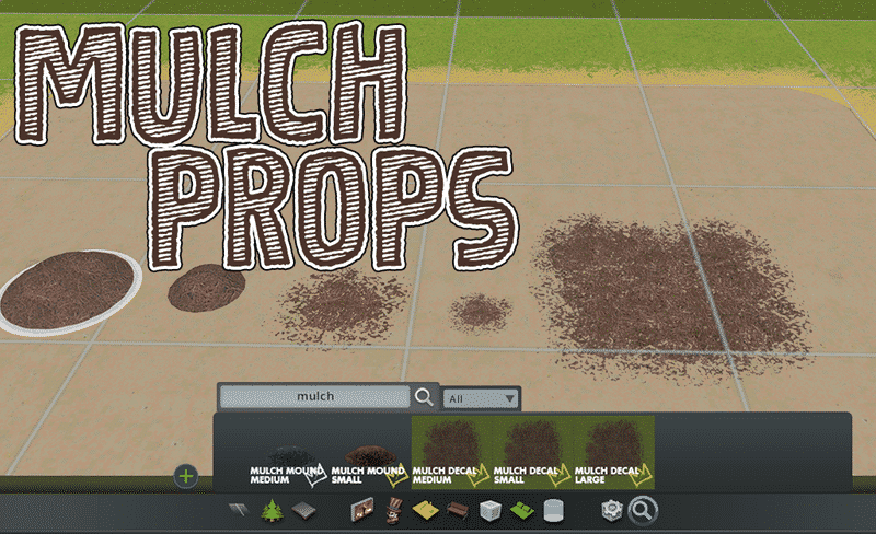 The mounds are designed to fit with most of the older Curb Props and Curb Props 2. The decals borrow the alpha map from boformer’s Fallen Leaves Decal.