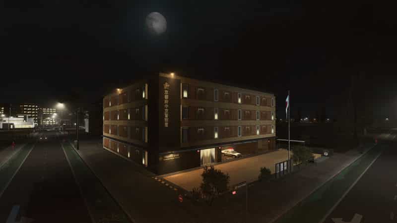 Hello. This Police Station is based on the Nakagyo Police Station in Kyoto, with a reduced size to fit 8 x 8 in-game cell. Originally I had a Japanese flag prop(from BP’s more flags mod) there but decided to ditch it anyway because some players might not want a flagpole there, and without the mod you’ll end up having random European flags which will kinda ruin the vibe. Also, if you do not want the Japanese police car you can just opt-out, it’s in the required list so that you don’t have to scroll through a bunch of text just for the link.