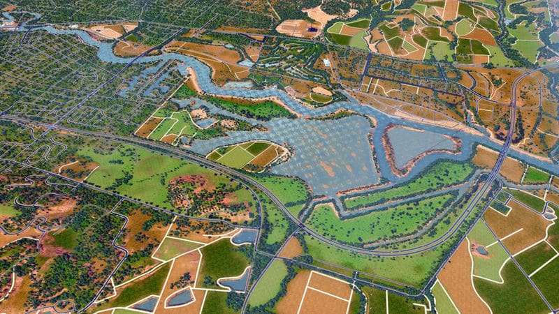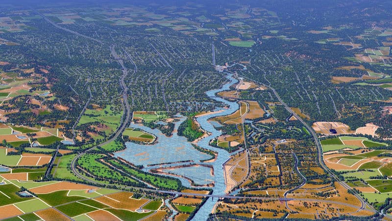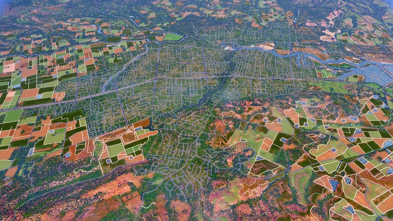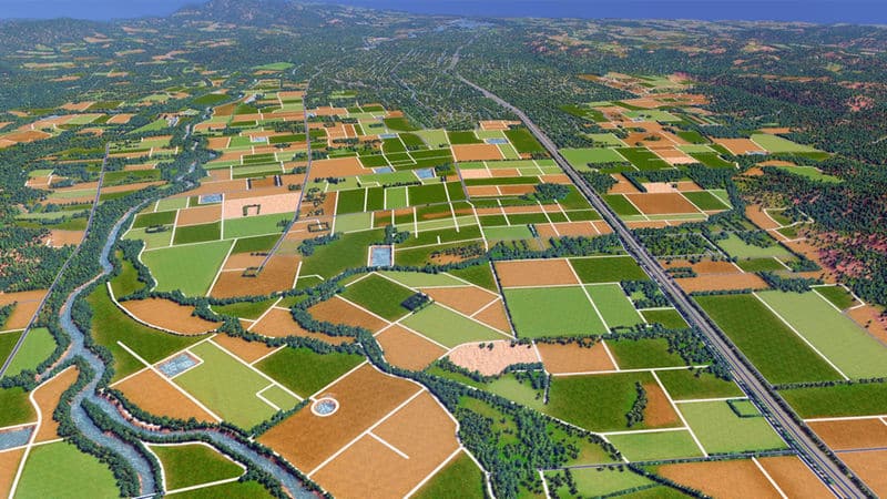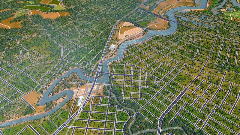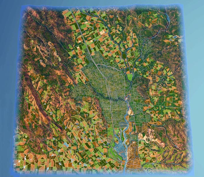 Napa is a city in California, just north of San Francisco. It is perhaps best known for its wine and vineyards. This map is a 1:1 recreation of the city of Napa. The road and highway network is true to real-life, with practically every important and most lesser roads being represented. The map uses real heightmap data, has a complex water system (including a dam), sprawling farmland (using resources for colors), and lots of trees. All 81 tiles of the map are detailed. Other than the roads and other details, this map does not have zoned buildings, pipes, or any other developed areas. I leave it to the player to develop the map as they see fit. The roads may be a tad odd in a few places, and overall the map’s a bit rough around the edges.