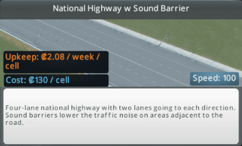 All stats are identical to the four-lane highway, which is only avaliable with the Mass Transit DLC.