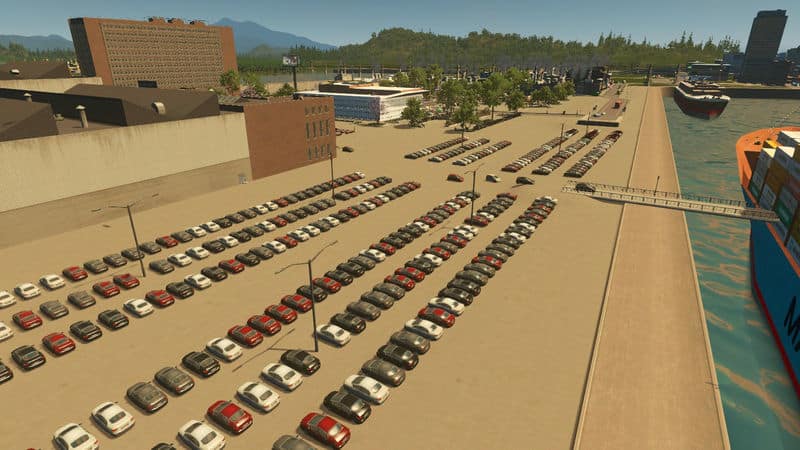 Requested published item – A car lot full of parked sedan cars (stationary props, not active cars) I made to go along with a the Miyagi Motors collection in my city (see images). The 4 colors of the prop cars change randomly, a nice touch by SvenPotsdam. Good for the typical masses of the same model of new cars seen at shipping ports, outside the car factories, or maybe a giant new car lot if you want.