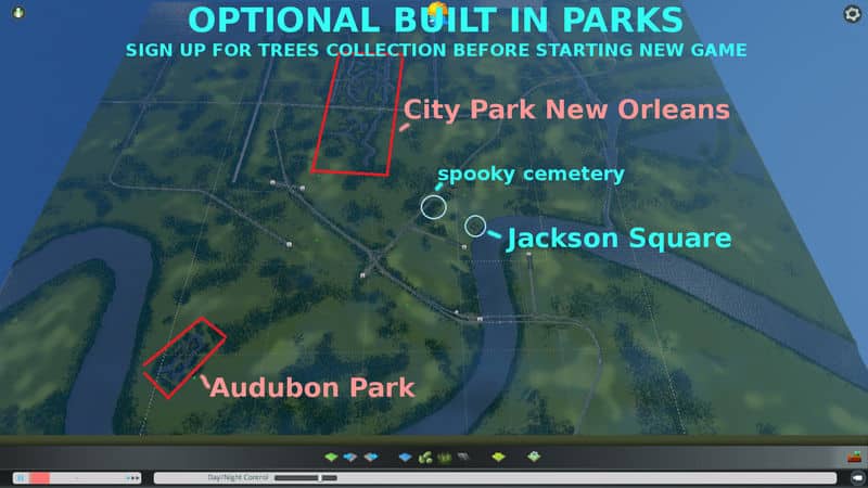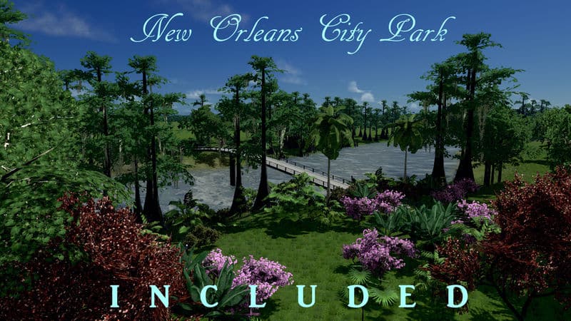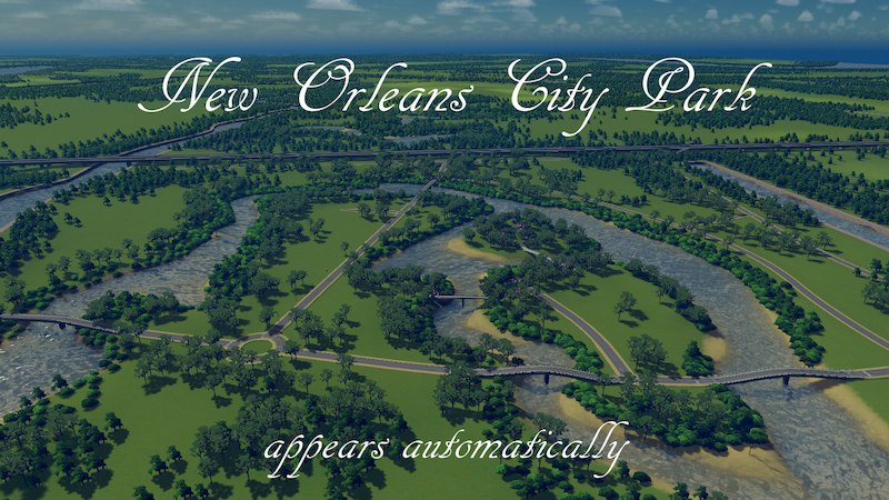 – Several pre-designed parks, including the large New Orleans City Park and famous Jackson Square, will appear automatically