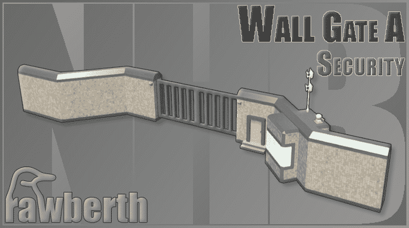 Metal wall encapsulated in tiled concreate with closed metal gate and security checkpoint.