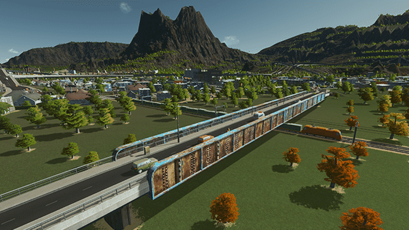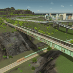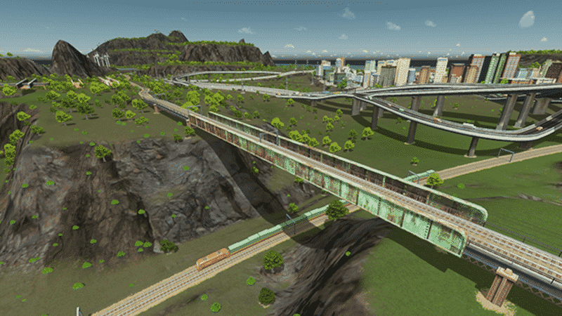 First Level the ground. Place the bridge. I’ve built it so that 9m high will fit level with it. So this will require Fine Road Heights Mod. Then enable road anarchy, Select your road type such as train track, Select No Collision/No Zoning option for No Pillars mod, I also believe sharper junction automatically has no collision on but I’m not entirely sure about that. Then you can select no pillars for the network skins option for elevated. Now you can place down your track right over the bridge with snapping turn off. I also found that afterwards you can move the asset actually and rotate if need be to get a perfectly aligned fit.