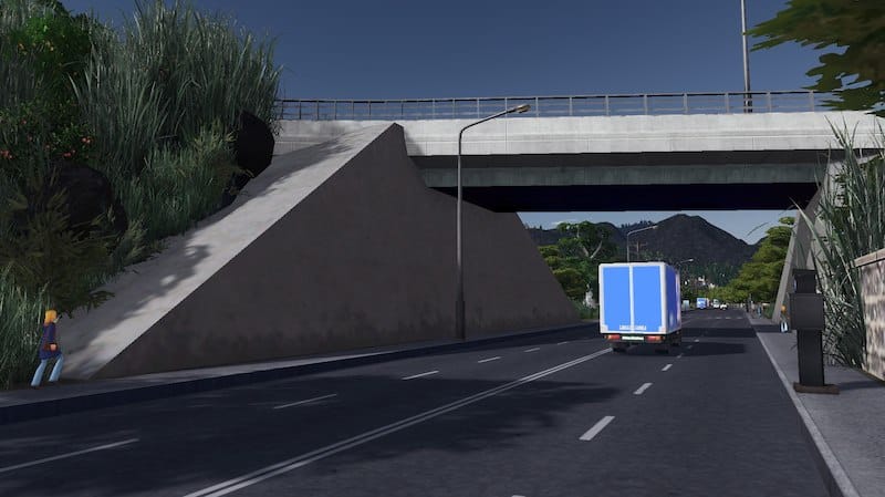 A graffiti-free version of this asset. This one is much more flexible as it just sits at the end, which means you can have as steep or as soft a slope as you’d like. As long as it raises to 12m this will fit. And it fits with rail as well.